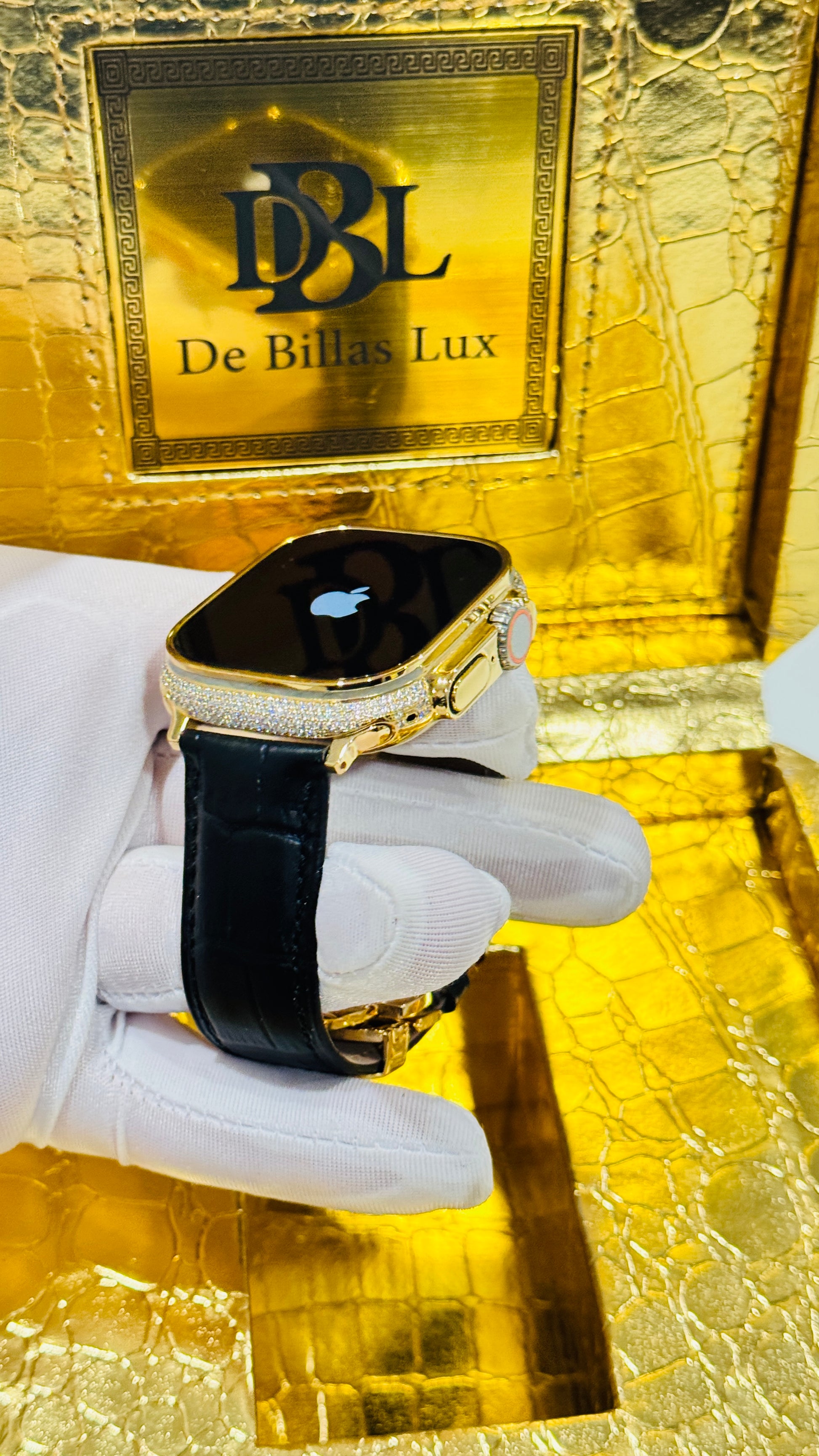Discover timeless sophistication with this Custom Apple Watch Ultra 3, expertly electroplated in genuine 24k gold and enhanced with hand-inlaid diamond accents on the housing. This exclusive piece blends cutting-edge technology with the elegance of fine jewelry—crafted for those who demand distinction in every detail.